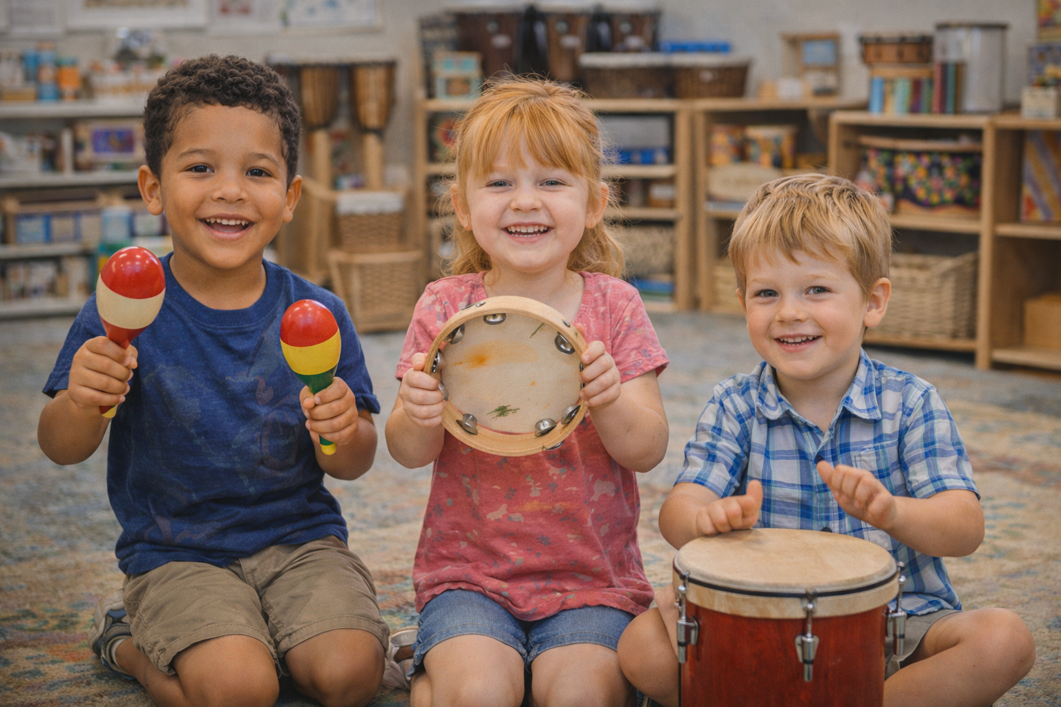 Music Makers introduces children to rhythm, melody, and movement through singing, instruments, and musical games. Classes support listening skills, coordination, and a lifelong love of music. Children love these classes.