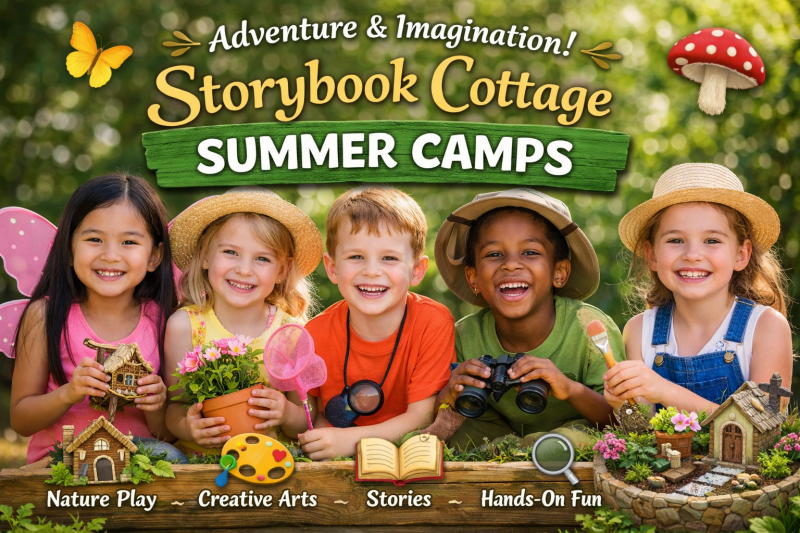 At Camp Storybook, summer days are filled with storybook stories, creativity, outdoor play, and hands-on learning — all in the cozy, storybook setting of Storybook Cottage.